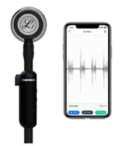 3M Littmann CORE Digital Stethoscope, 8890, Mirror Chestpiece, Black Tube, Stem and Headset, 27 inch